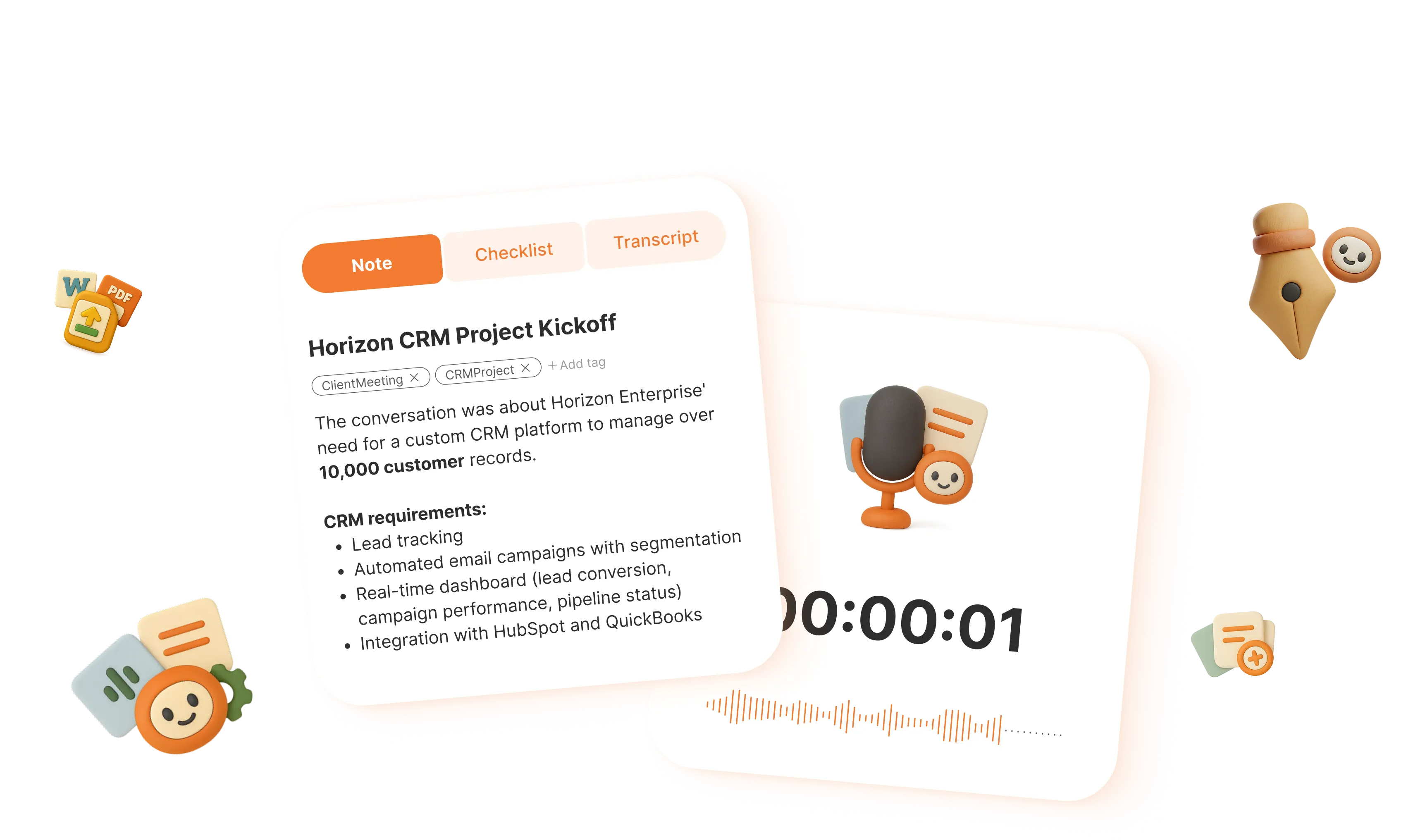I spend more time with clients instead of scribbling notes. It captures everything and gives me action points right after the meeting.